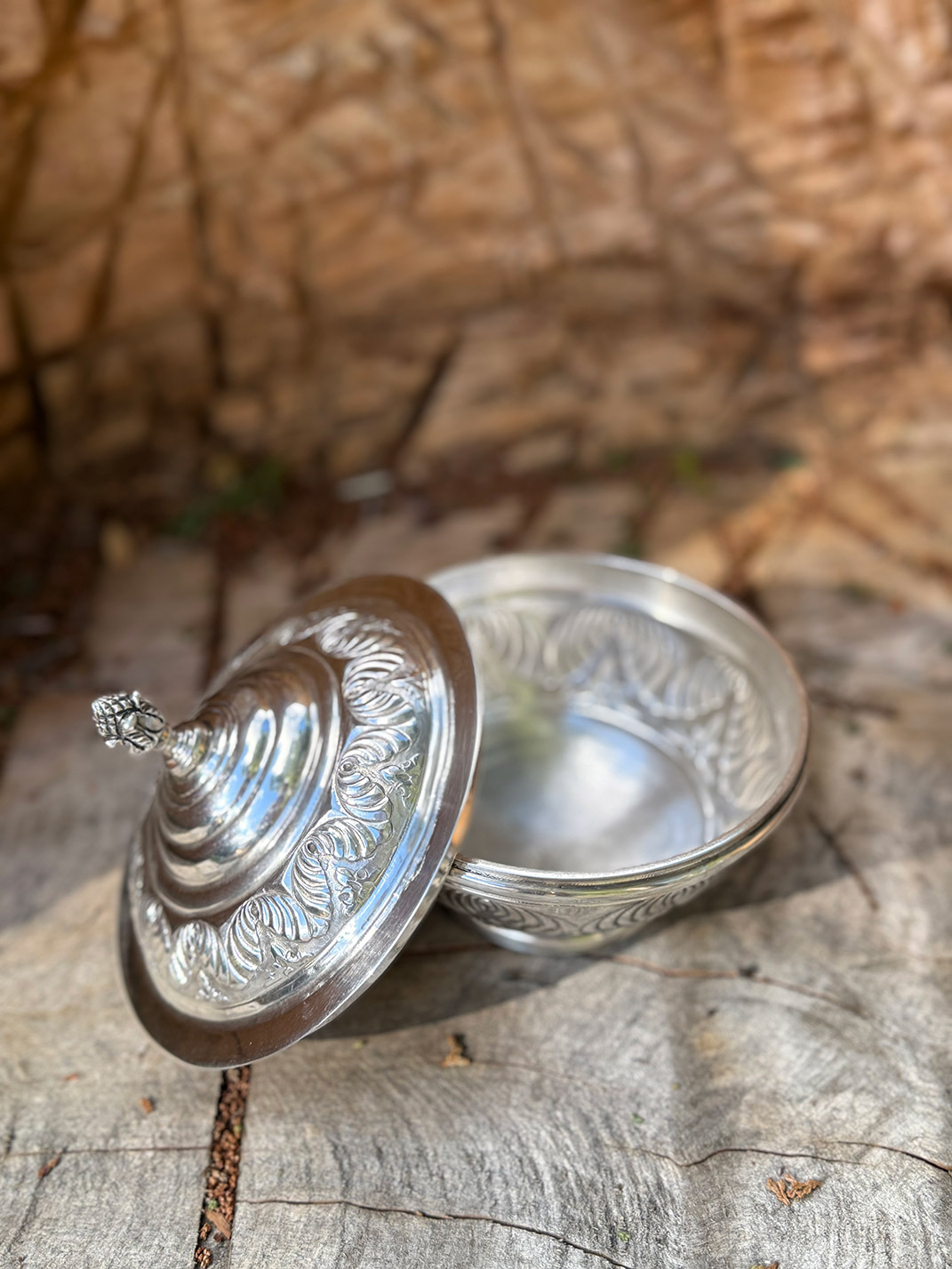 Forjado, batido y cincelado con apliques fundidos.